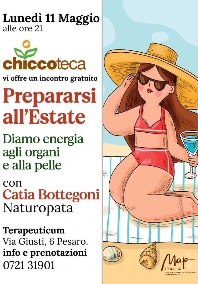 Per accompagnare questo cambiamento, Chiccoteca propone un incontro gratuito dedicato alla preparazione all’estate, un momento di approfondimento e consapevolezza pensato per chi desidera prendersi cura di sé in modo naturale ed efficace.