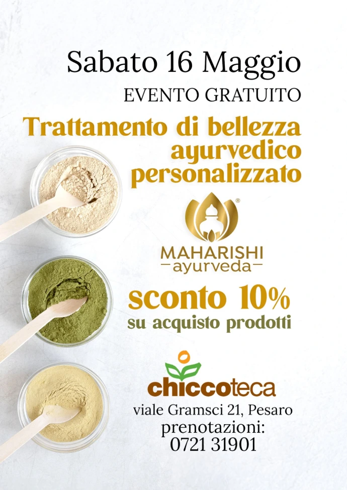 Sabato 16 Maggio Chiccoteca ospita una giornata dedicata al benessere e alla cura della persona con un evento gratuito firmato Maharishi Ayurveda.